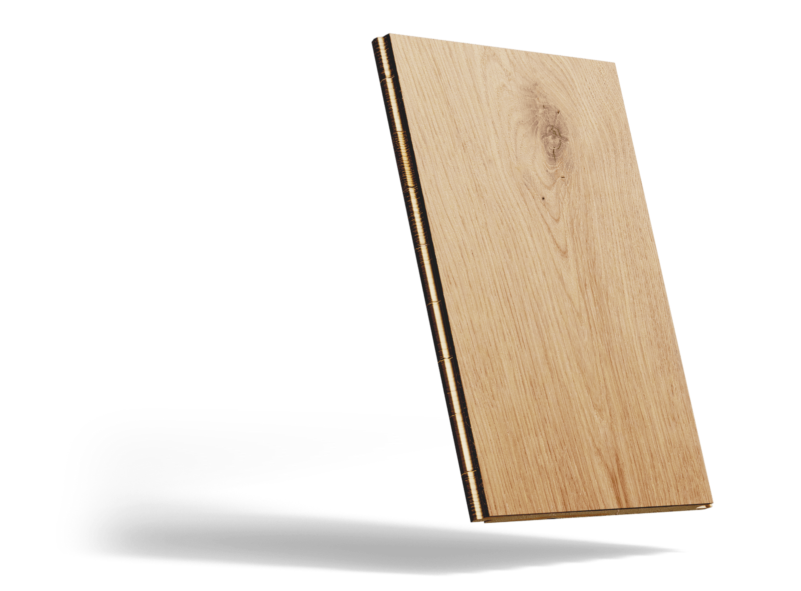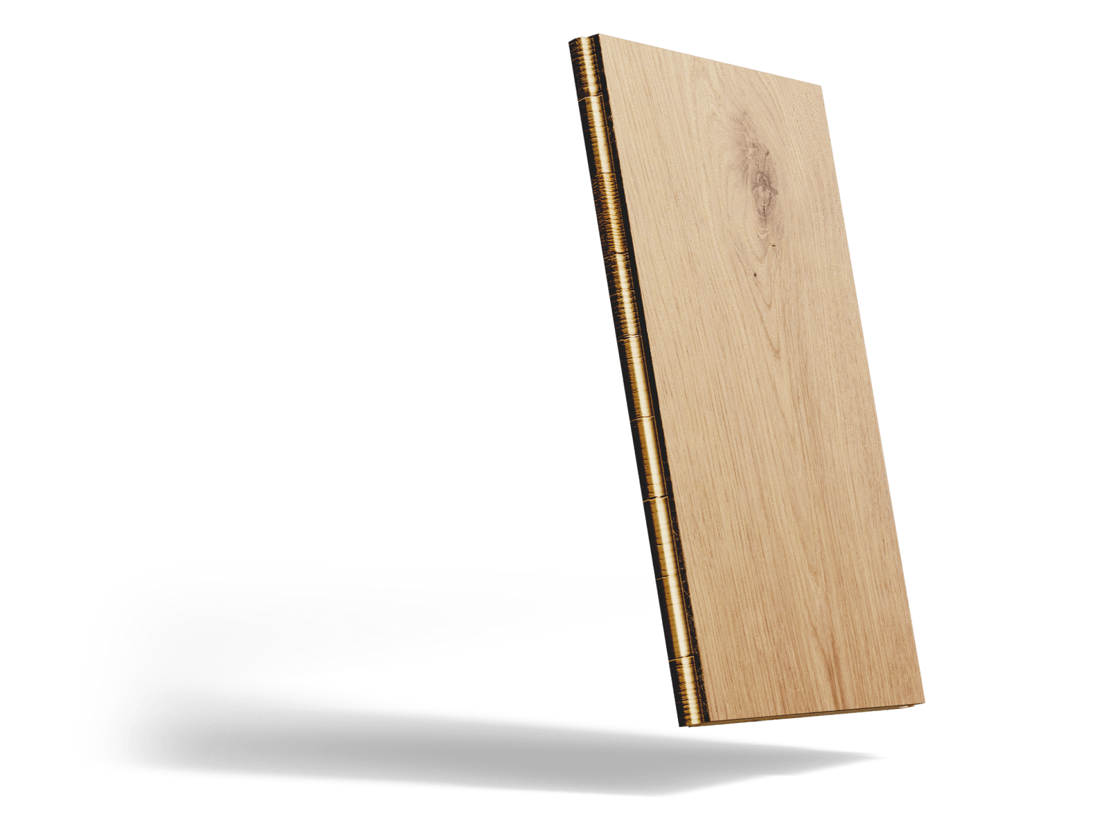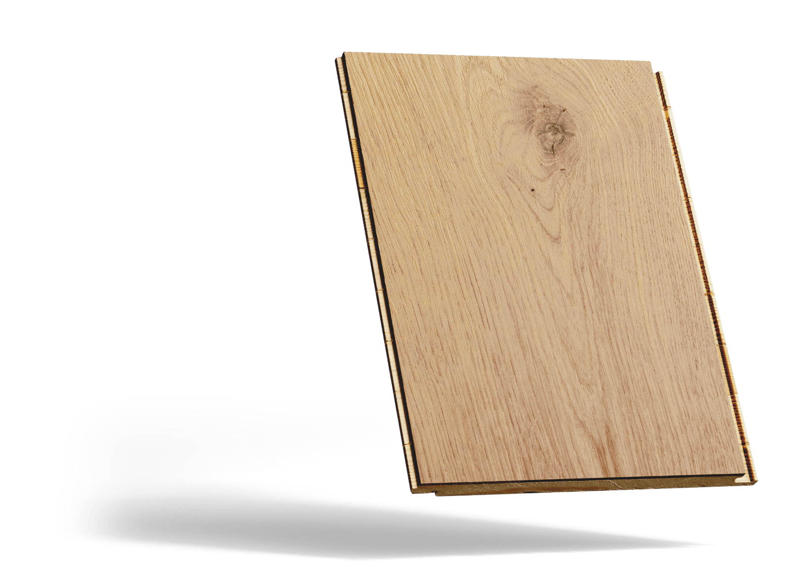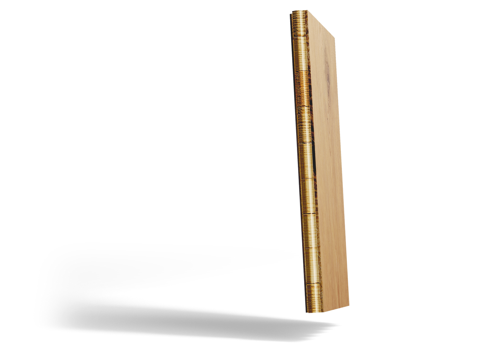 Fast-growing, sustainable, and porous pine strips that expand and contract individually, protecting the top layer of wood. Invented in 1941, this construction is the gold standard in Europe. It’s been performing for lifetimes, which is why we can offer a lifetime warranty.
