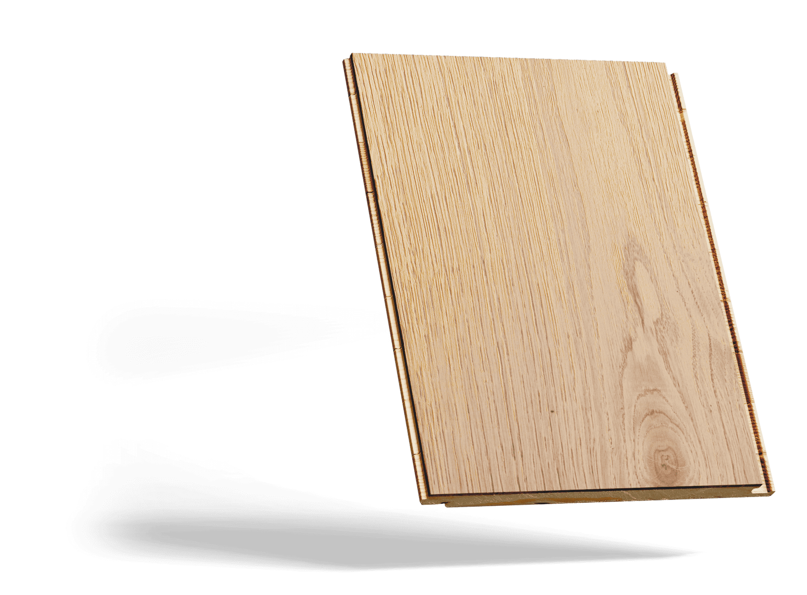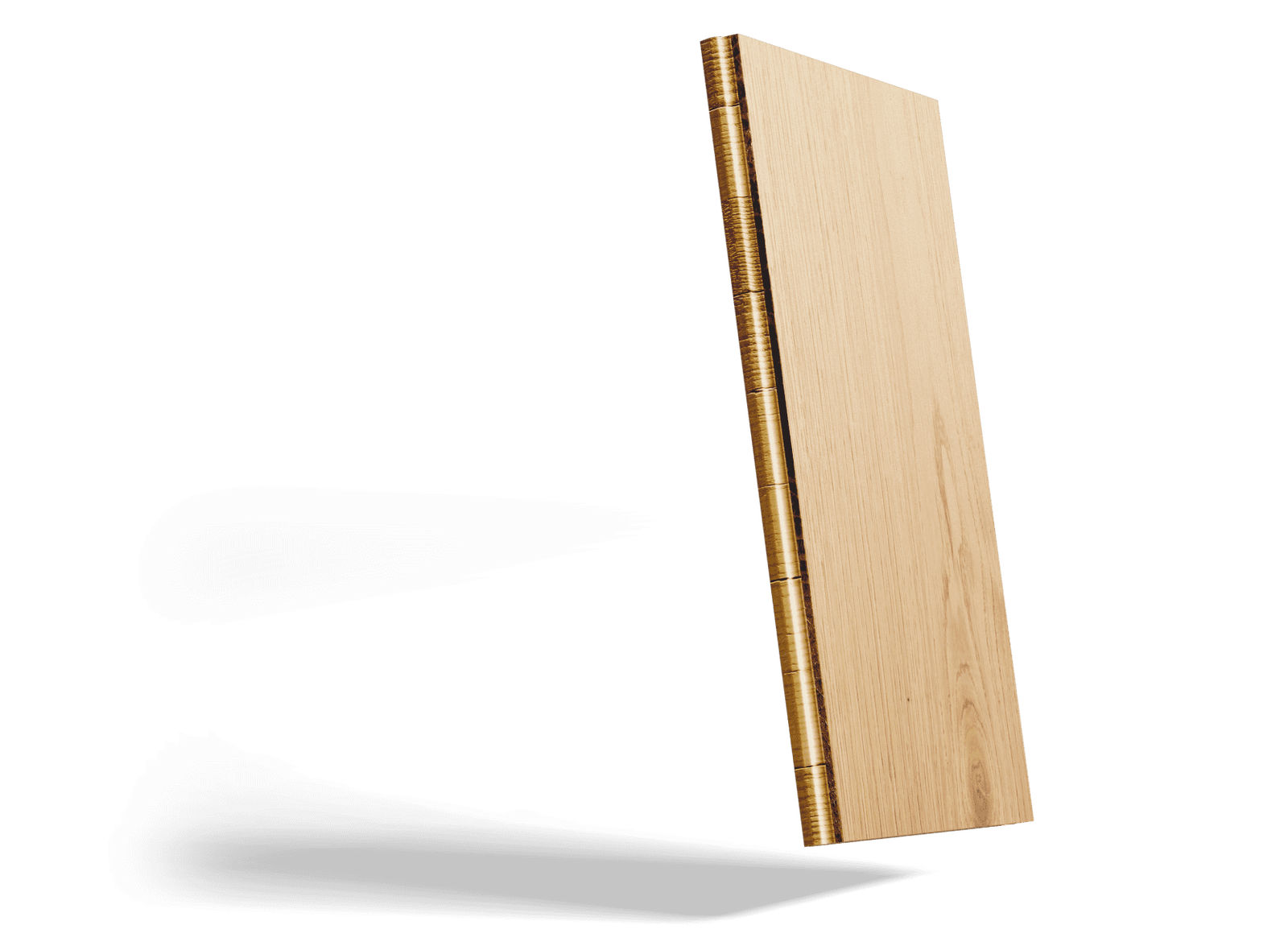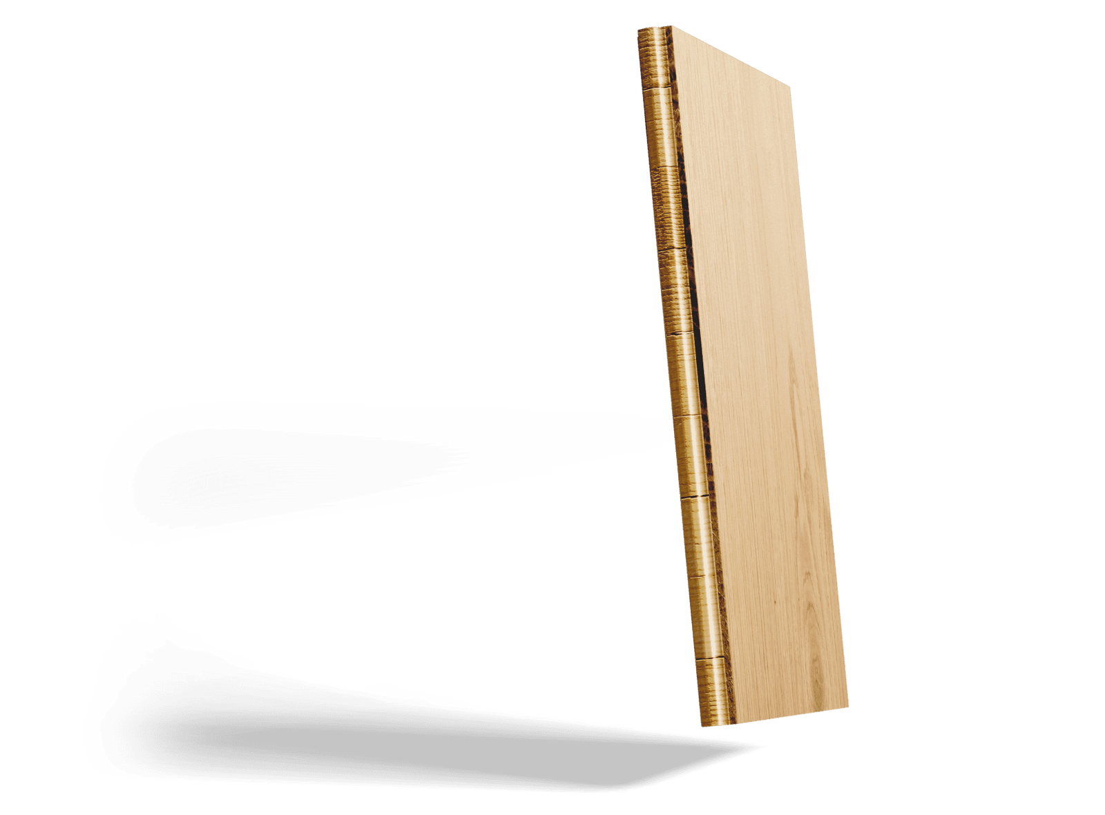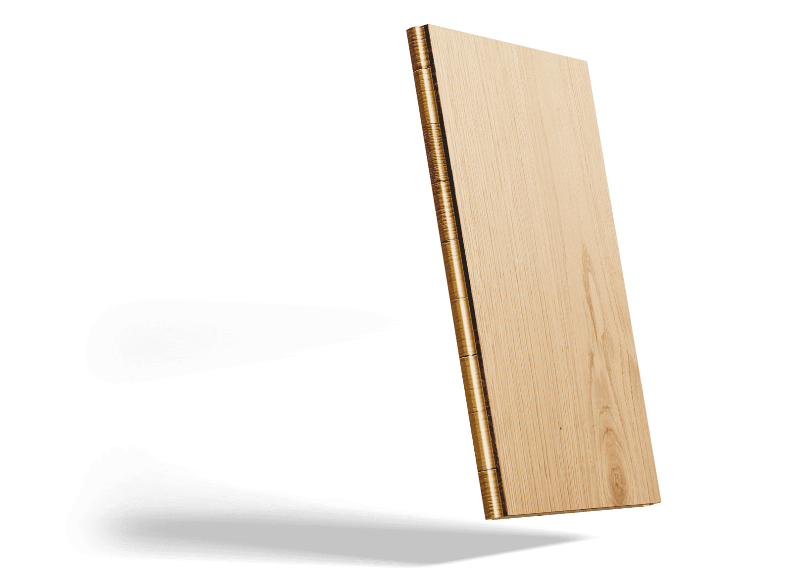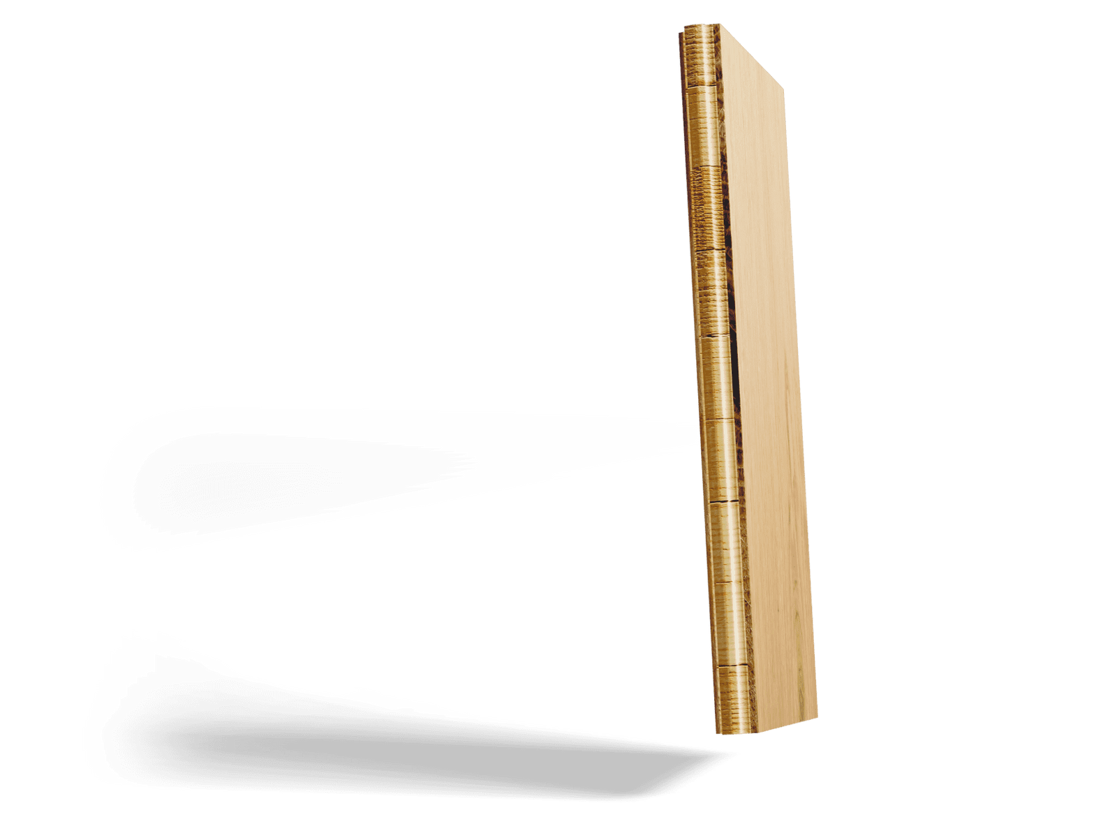 Fast-growing, sustainable, and porous pine strips that expand and contract individually, protecting the top layer of wood. Invented in 1941, this construction is the gold standard in Europe. It’s been performing for lifetimes, which is why we can offer a lifetime warranty.