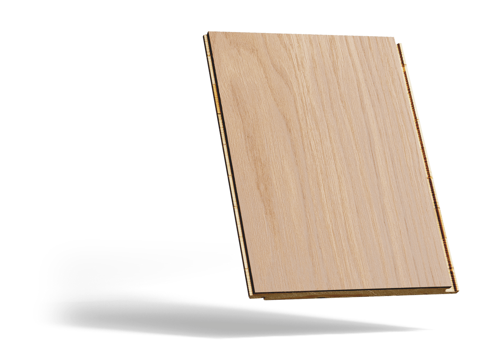 Fast-growing, sustainable, and porous pine strips that expand and contract individually, protecting the top layer of wood. Invented in 1941, this construction is the gold standard in Europe. It’s been performing for lifetimes, which is why we can offer a lifetime warranty.