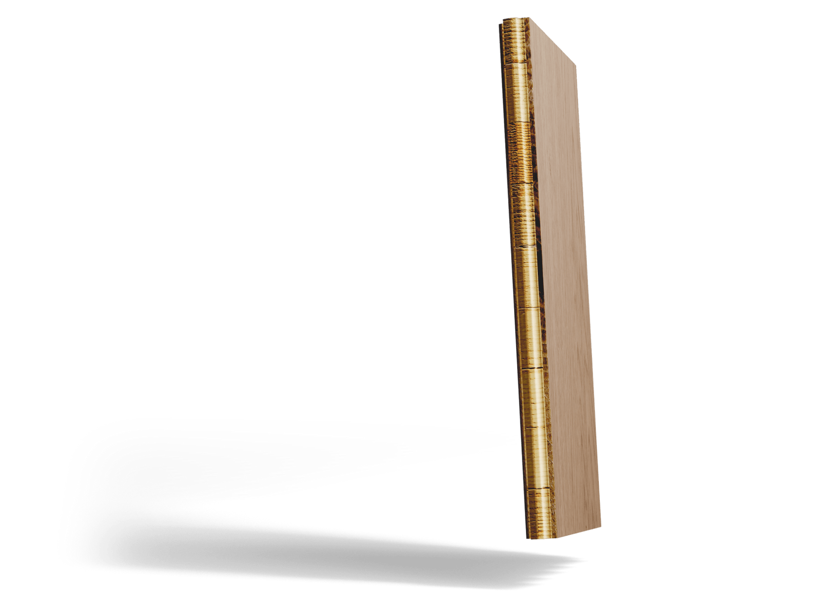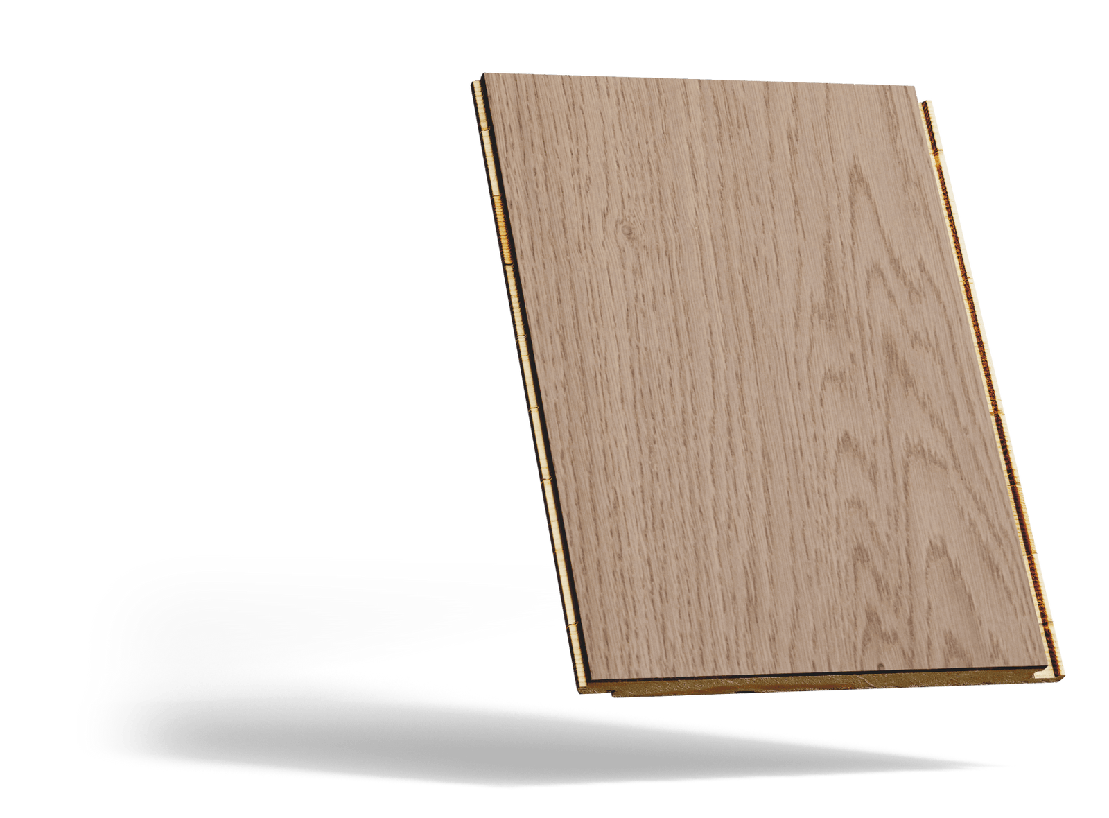 Fast-growing, sustainable, and porous pine strips that expand and contract individually, protecting the top layer of wood. Invented in 1941, this construction is the gold standard in Europe. It’s been performing for lifetimes, which is why we can offer a lifetime warranty.