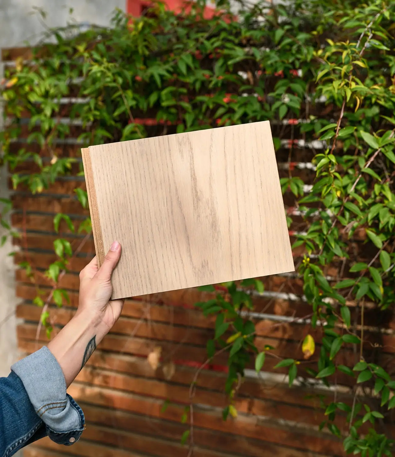 The oak is fused with a moisture-resistant composite core through heat and pressure, reinforcing the wood at a cellular level with resin and wood dust. The result is 3 to 5x stronger than traditional hardwoods.
