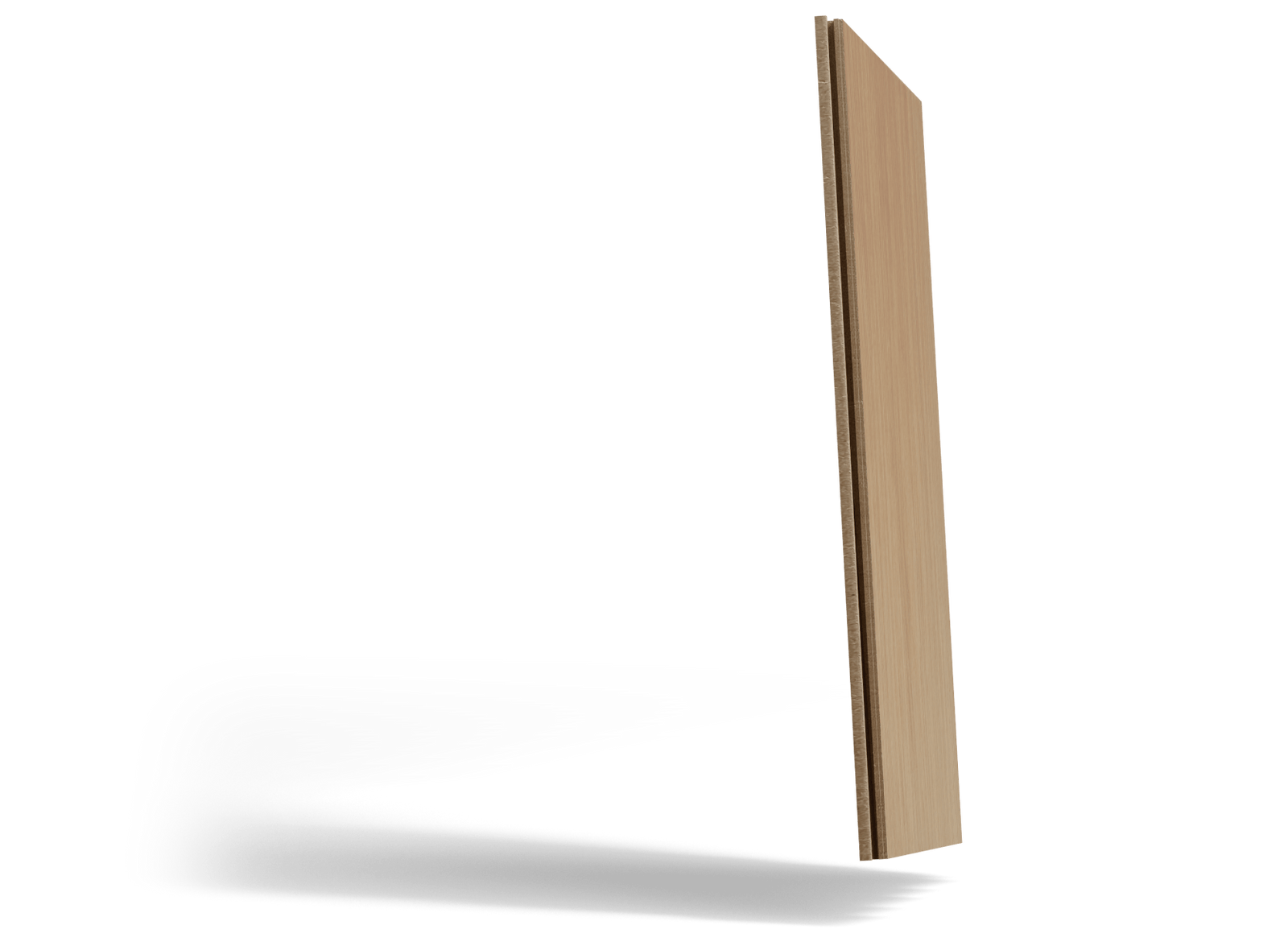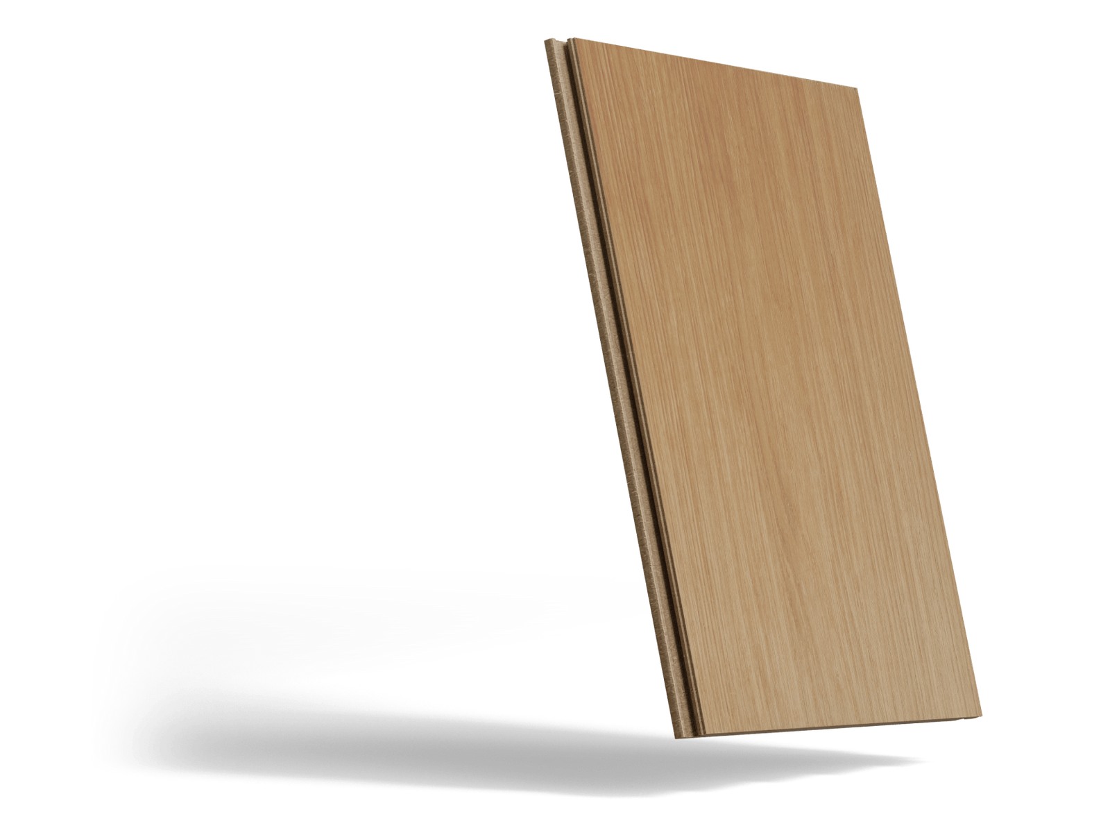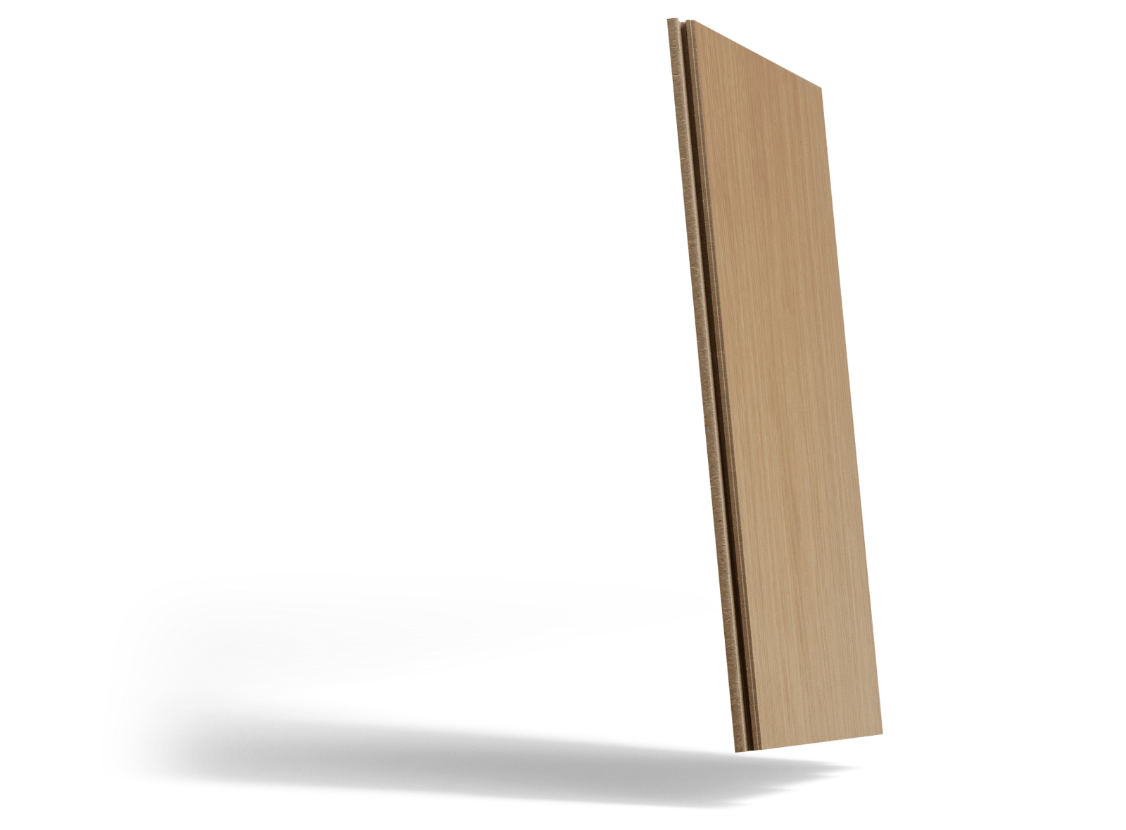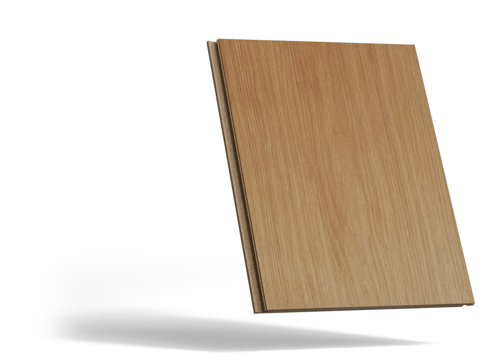 The oak is fused with a moisture-resistant composite core through heat and pressure, reinforcing the wood at a cellular level with resin and wood dust. The result is 3 to 5x stronger than traditional hardwoods.