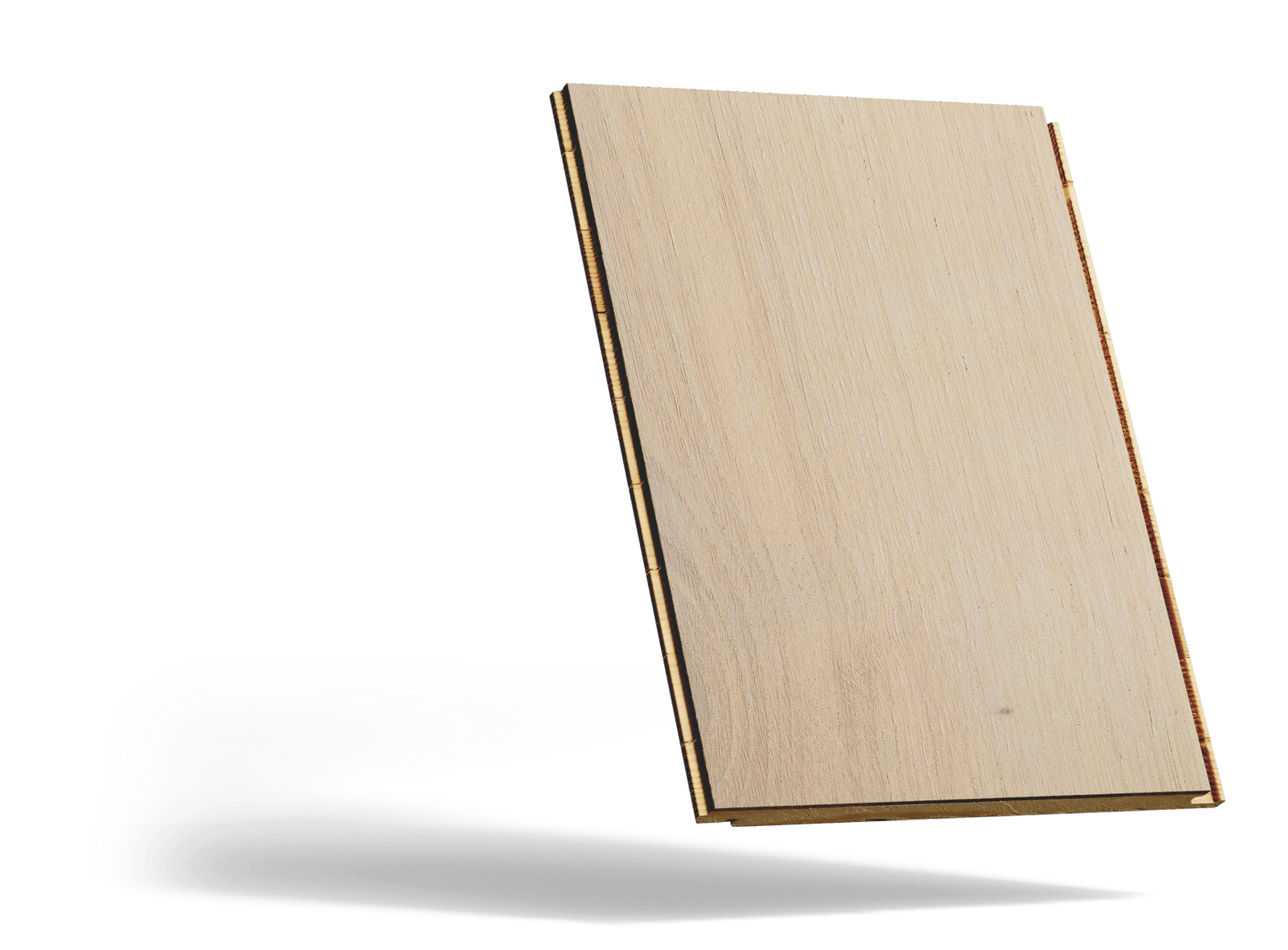 Fast-growing, sustainable, and porous pine strips that expand and contract individually, protecting the top layer of wood. Invented in 1941, this construction is the gold standard in Europe. It’s been performing for lifetimes, which is why we can offer a lifetime warranty.